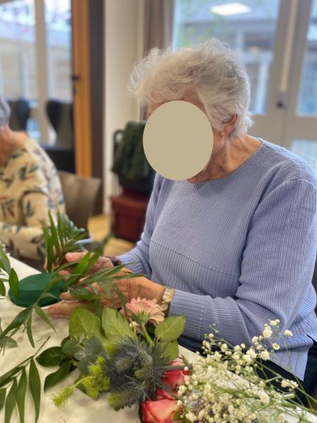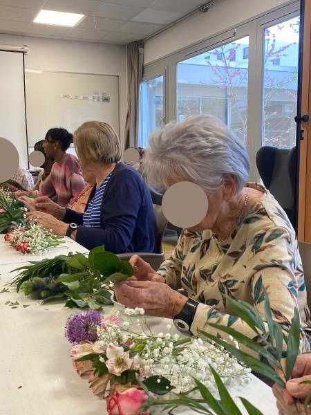 Cet atelier à visée thérapeutique a été très apprécié par les résidents présents. Chacun a pu réaliser sa propre composition à partir de fleurs fraîches, sélectionnées le matin même chez le fleuriste.